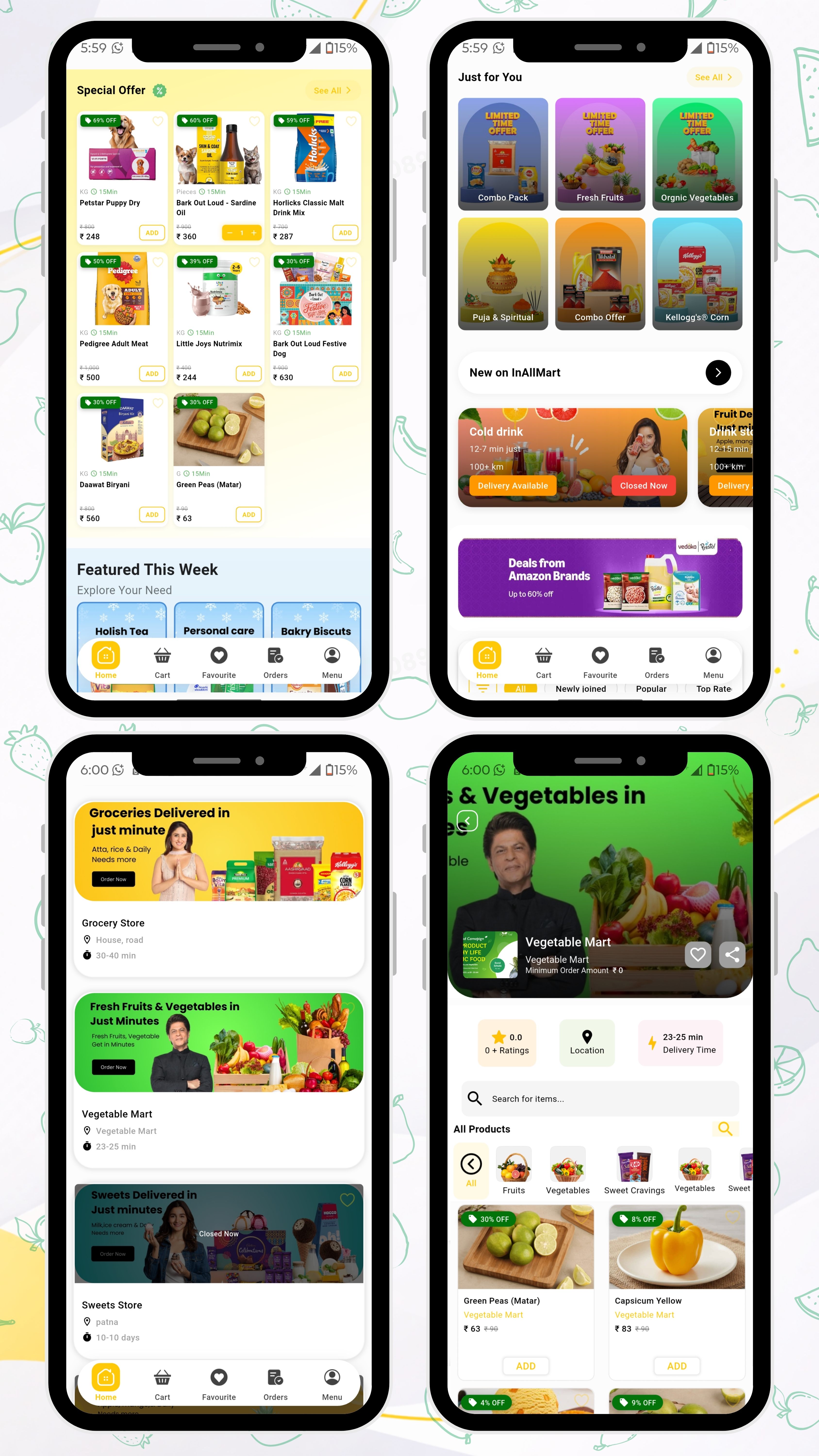 InAllMart is New UI/UX, modern Blinkit style next-generation multi-vendor platform with a completely New Look & design, and fast Blinkit-style user experience built for quick-commerce All in one multi vendor Food Grocery eCommerce Pharmacy Parcel Car Rental etc.
